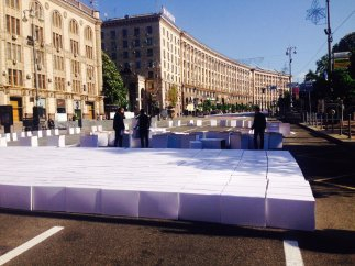 На Крещатике в Киеве в 9 часов общественные организации начали акцию, которая заключается в выкладывании украинского лозунга «1939-1945. Помним. Побеждаем» из пустых картонных коробок. Об этом сообщает издание «Вести».
